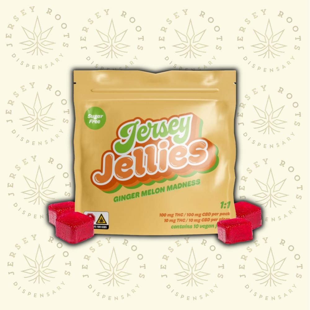 Ginger Melon Madness 1:1 (THC:CBD) -Sugar Free- | Jersey Jellies | 10pk/100mg Cured Resin