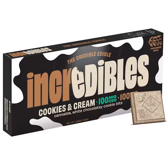 Cookies and Cream 1:1 THC:CBD | Incredibles Chocolate | 100mg